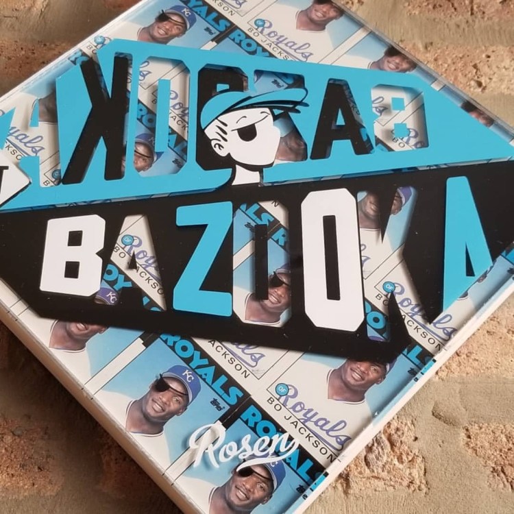 Bazooka Bo came out pretty badass… like Bo himself. Made with 20 of his 1986 @topps traded rookie cards. Look at how thick his neck is!