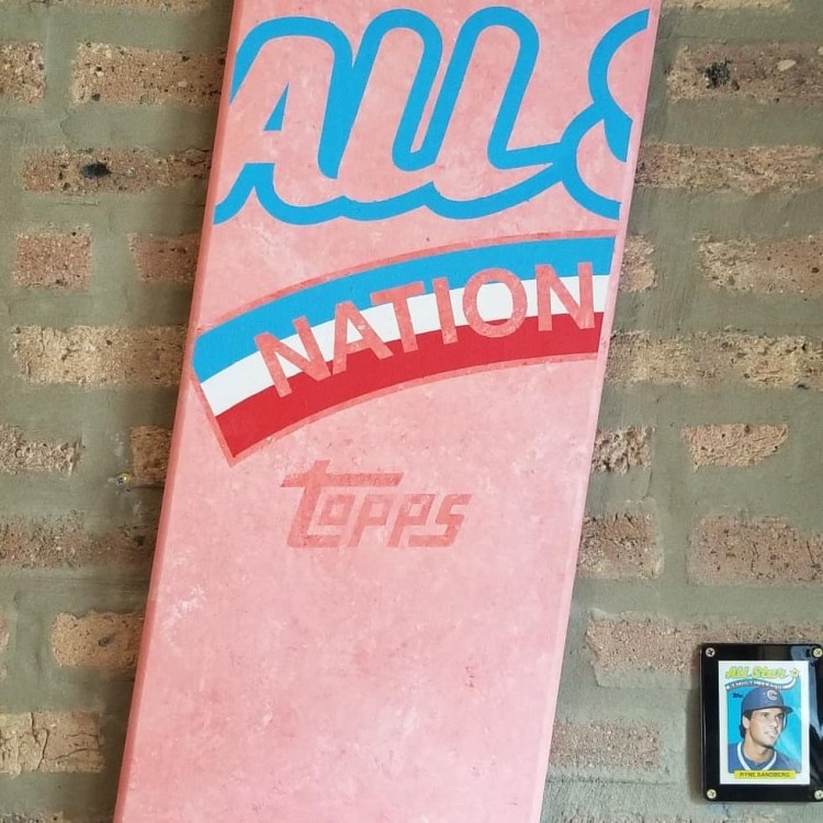 #baseballart #baseballcards #baseballcardart #thehobby #topps #allstar #80s #rynesandberg #chicagocubs #pink #bubblegum #MatthewLeeRosen